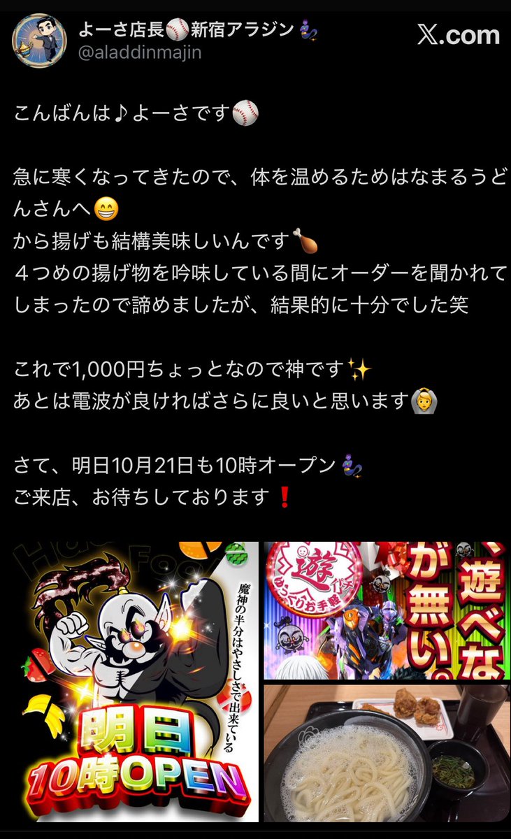 10/20は、、、営業中! https://twitter.com/slot777slot777_/status/1979859197786542090
