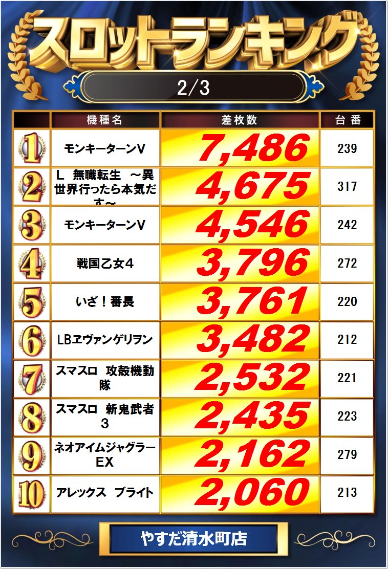 平均差枚:−500枚(0/2) https://twitter.com/emepka/status/2018593096729289098