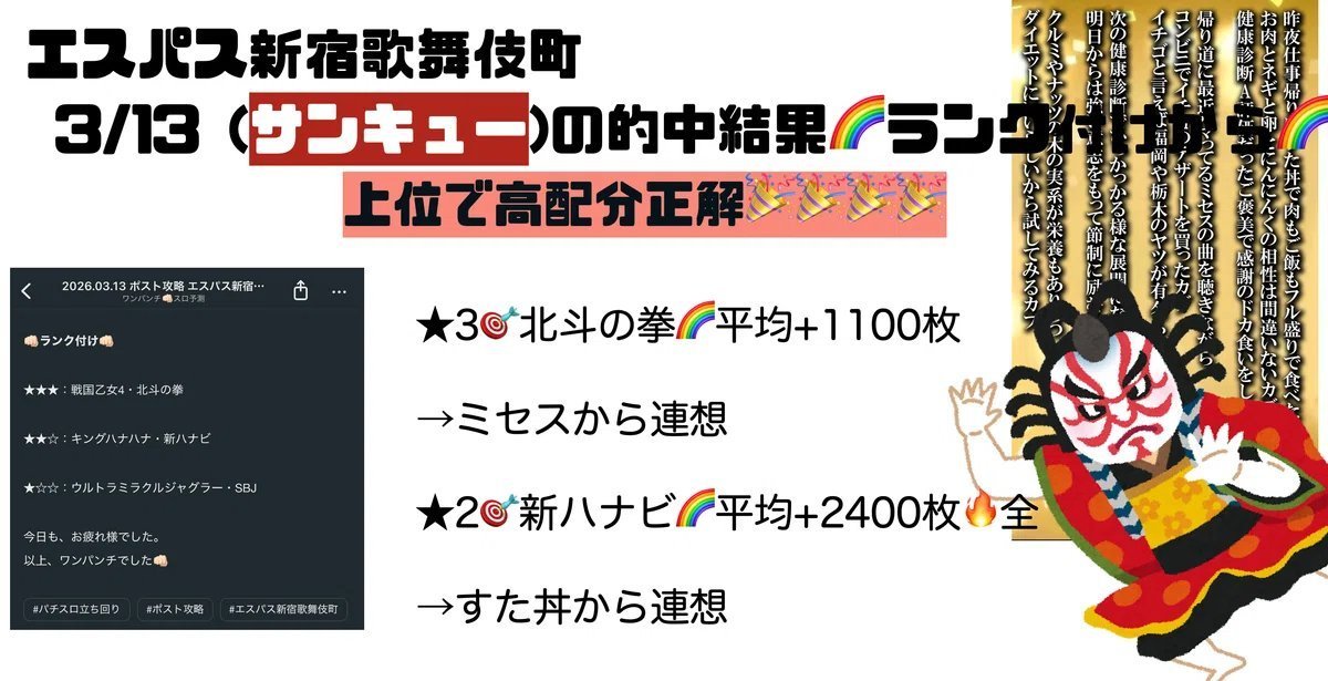 【ピーアーク北千住】2026/3/22(日)高設定機種予想【パチスロデータ分析】|設定大好き!シゴロちゃん 🎲