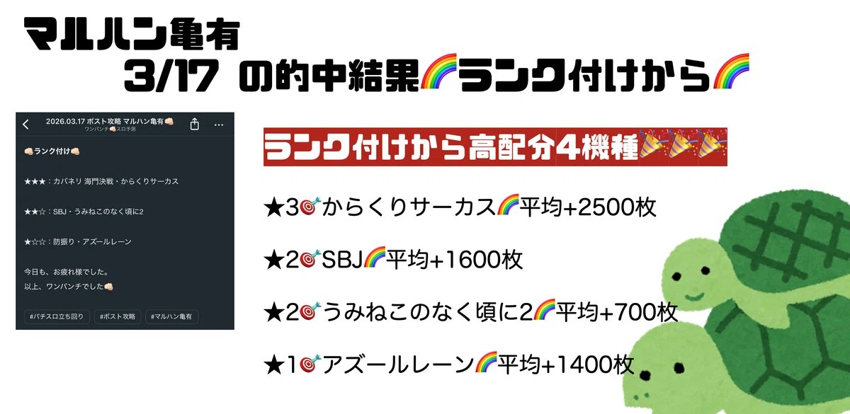 【マルハン亀有】2026/3/22(日)高設定機種予想【パチスロデータ分析】|設定大好き!シゴロちゃん 🎲