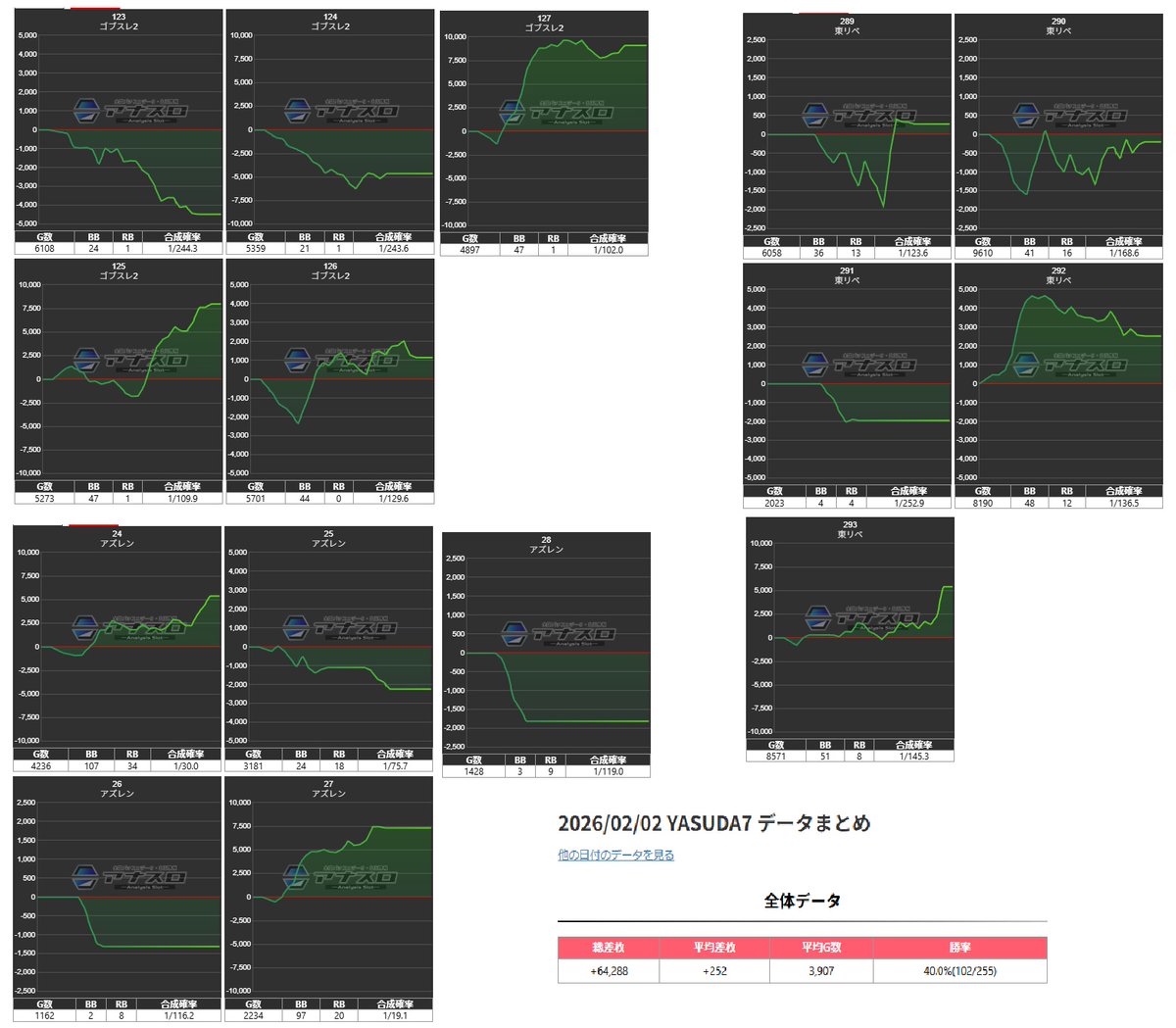 機種②ゴブスレ2 差枚+1,852 勝率3/5