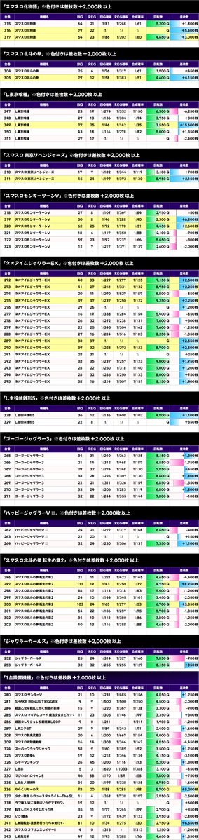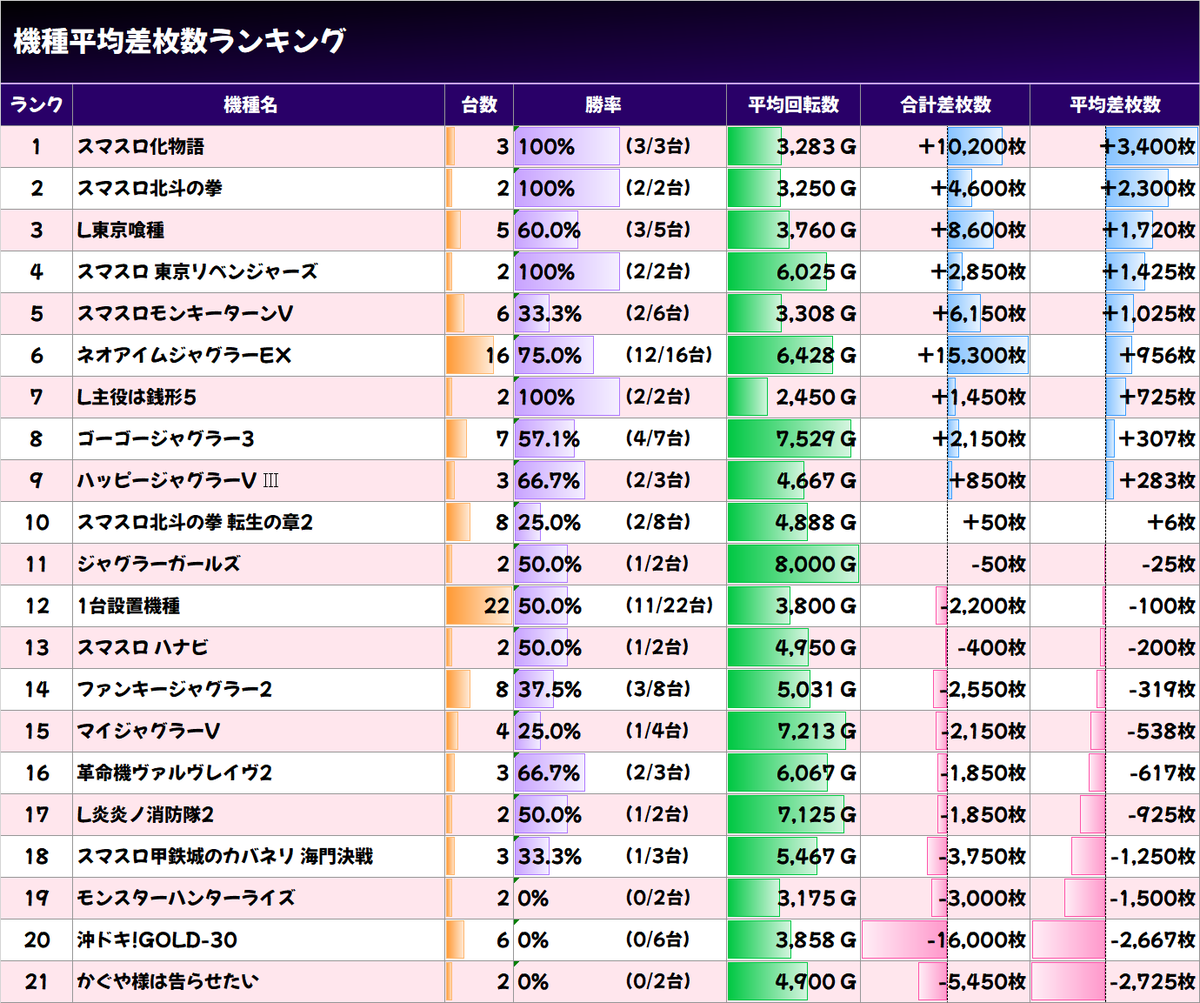 ✨平均差枚数上位機種✨