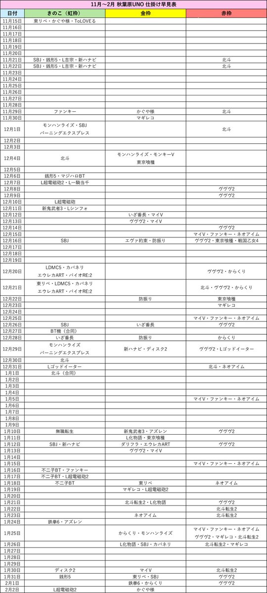 投稿本文: 秋葉原UNO」お試し情報共有です。1月の集計結果をもとに、明日の全撃対象台を考えていきます。