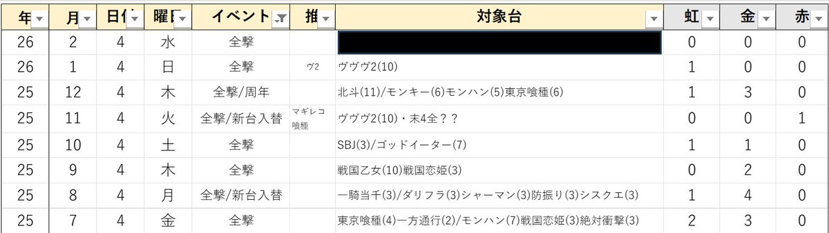 全撃の履歴(1枚目)をまとめていますが、ご覧の通り