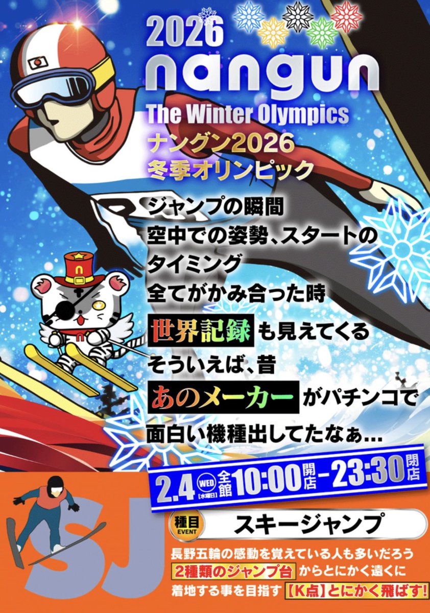 投稿本文: 🗓️2月4日(水)"ナングン東温店"━━━━━━━━━━✅4の付く日/特定日━━━━━━━━━━新しい一週間のPOPが発表されて色々な考察が飛び交ってるんじゃないかな?【スキージャンプ】は確かに神台でした🤣wそれに基づいて【世界記録】【あのメーカー】が今回の示唆になるのかな!? さらに表示