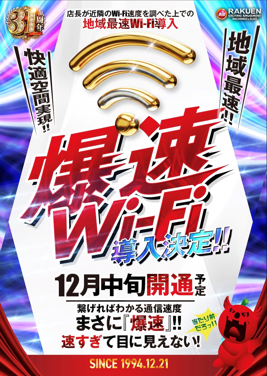 投稿本文: 12月10日水曜日楽園袋井店です😈もうすぐ爆速Wi-Fi爆誕🛜令和の時代にまだなかった。でも令和7年間に合いました。遂に楽園でもWi-Fiが使える😈周年月間に合わせて頼み込んだ甲斐がありました。本日も元気に9時開店🕘 さらに表示