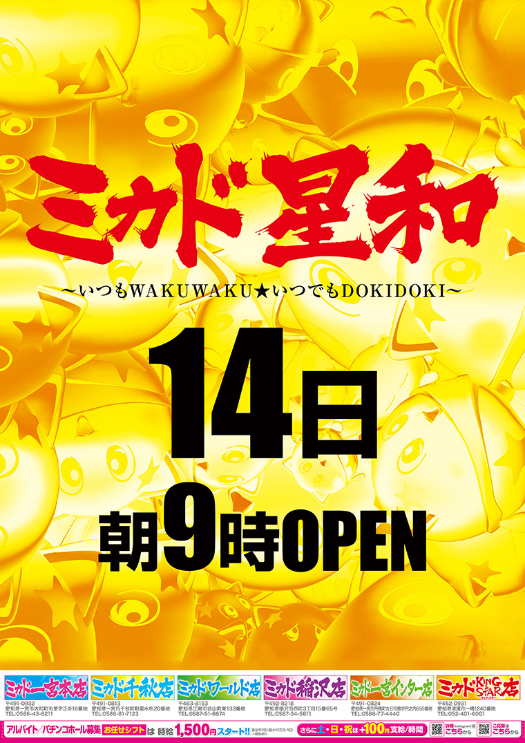 投稿本文: こんばんは😃ミカドキング&スター店です(^^)/ 明日1月14日(水) 朝9時開店!新台入替(^^♪朝からご遊技出来ます😍いちご大福販売会開催🍓ご来店お待ちしております(^^)/ さらに表示