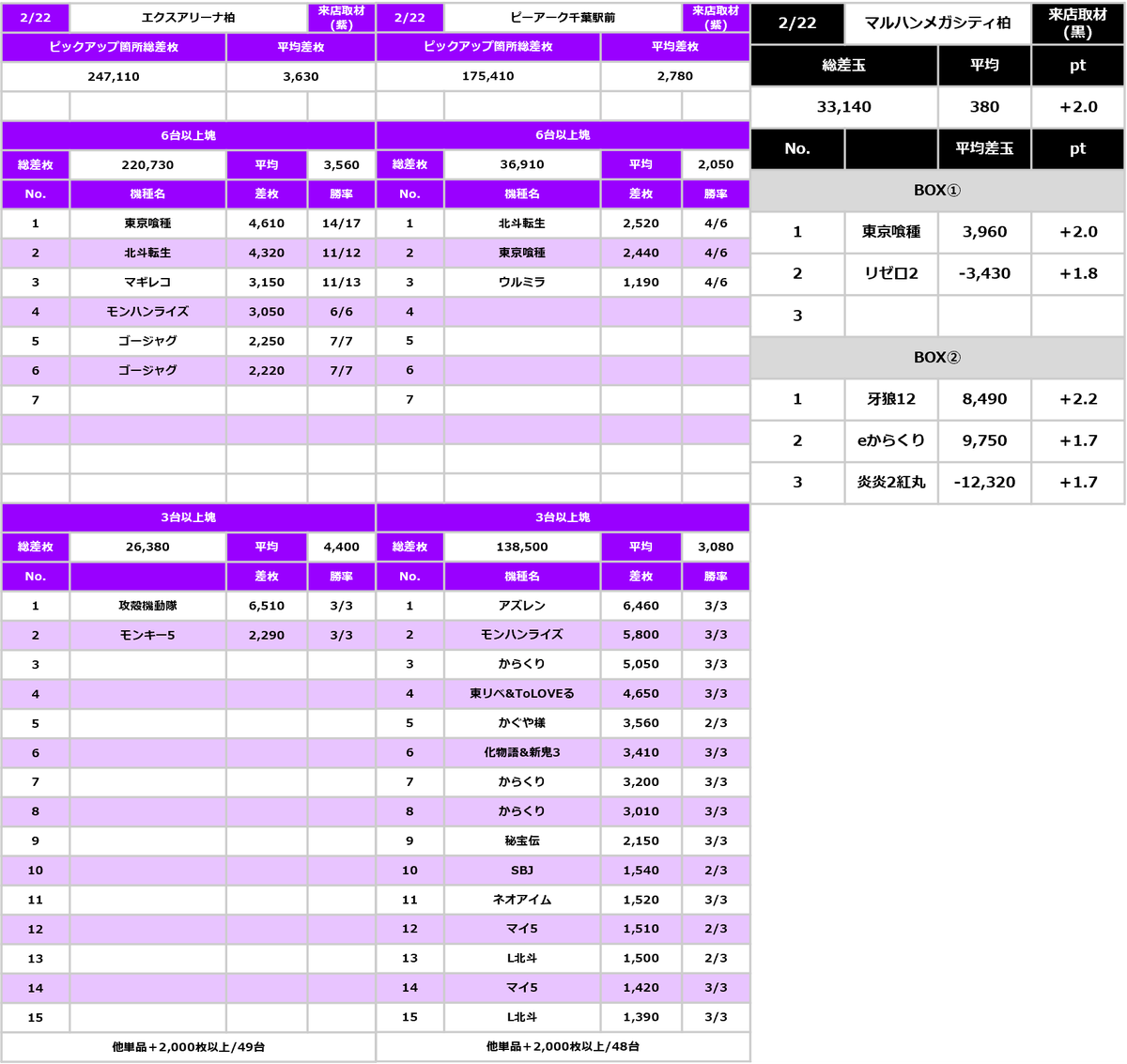 3月22日のマルハンメガシティ柏と千葉一蘭