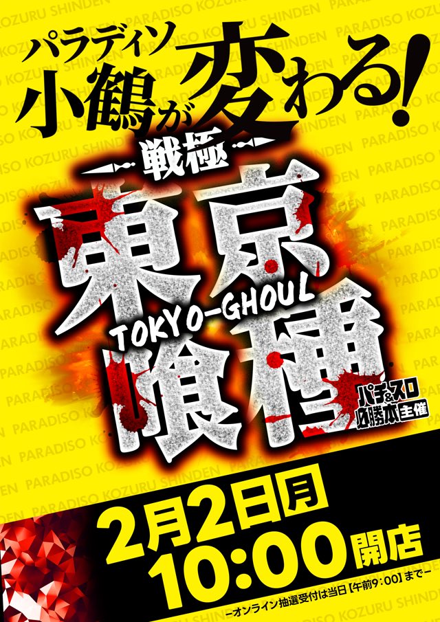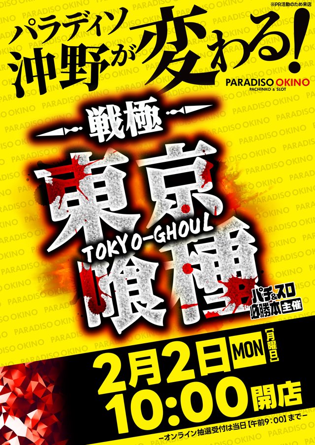 投稿本文: 🐰🌈 2/2(月) 明日のおすすめ🌈🐰🏯🏯🏯🏯🏯🏯宮城🏯🏯🏯🏯🏯🏯📝📝来店/取材📝📝📍パラディソ1000泉店・旧イベ(ゾロ目の日)・戦極~東京喰種~📍P-STATION仙台・格付けスピリッツ📍メルヘンワールド長町南店👤桜兎ぬしこさん来店📍パラディソ沖野店・戦極~東京喰種~ さらに表示