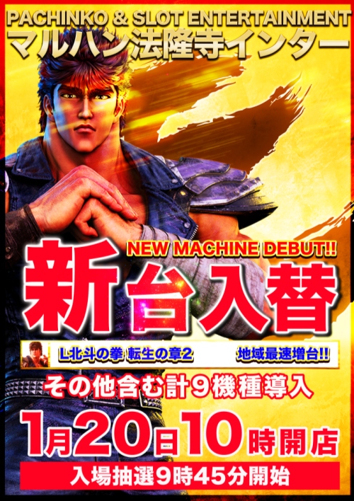 投稿本文: こんばんは⚡️マルハン法隆寺インター店です!遂に!あの人気機種を🔥地域最速増台🔥🌈1月20日[火]🌈朝10時開店🌈新台入替🌈入場整理券9時45分~その他機種を含む計9機種導入完了!新台をはじめお好みの機種でお楽しみくださいませ!#マルハン西日本 #法隆寺 さらに表示