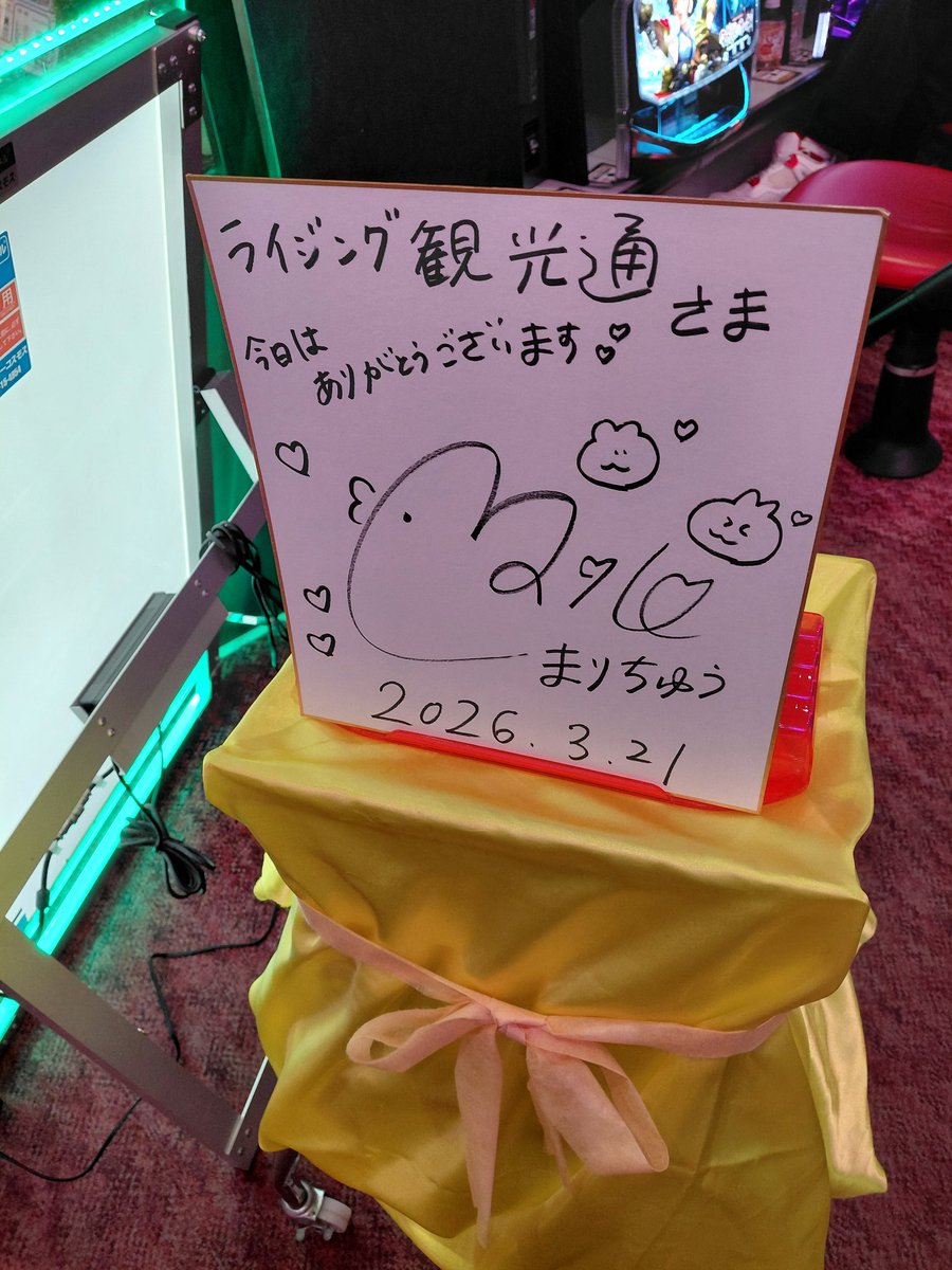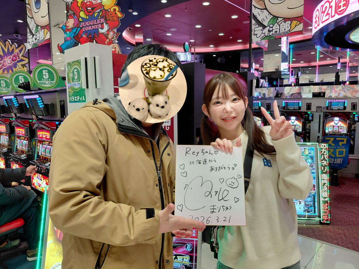 投稿本文: 2年の時を経て、、、(前回は2024.3.23 八戸にて)まりちゅう様にお会いしてきました🤩可愛いお顔と実践中の真剣なお顔見れてたくさんサインもいただきました✍感謝です🙏🏻またお会いできますように✨ライジング観光通さん、ホールデカかったなぁ~わいは今日…渋かった、、、💸😂 さらに表示