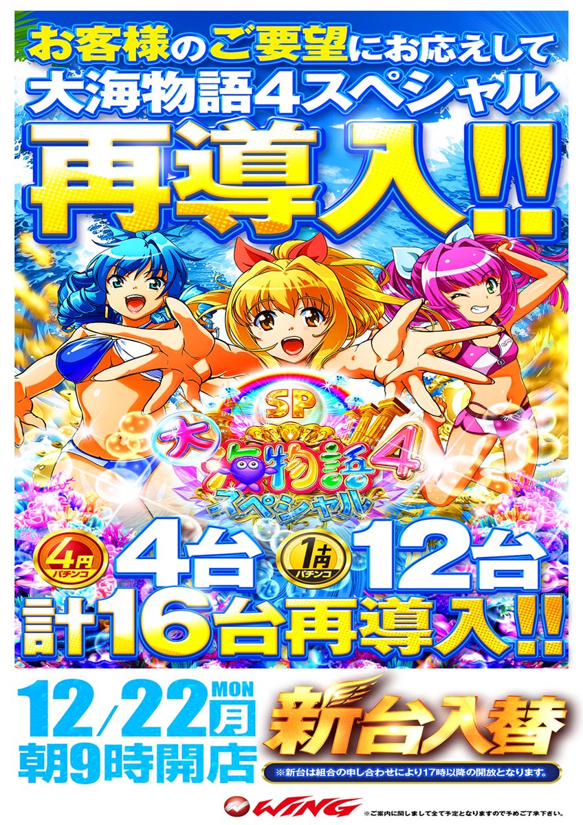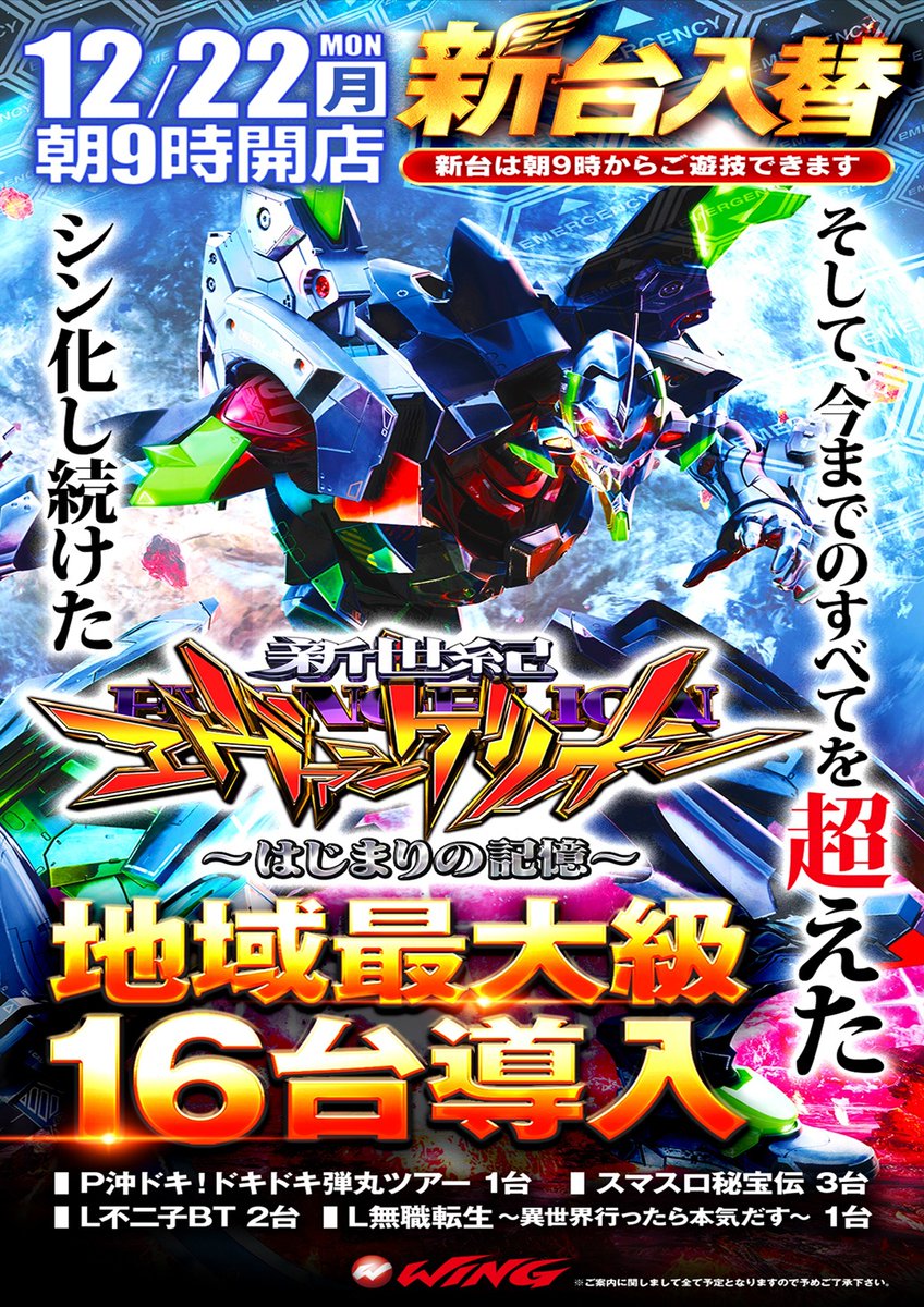 投稿本文: こんばんは!ウイング松阪南店です( *´艸`)明日は今年最後の新台入替です!!✨エヴァシリーズ最新作【新世紀 エヴァンゲリオン~はじまりの記憶~】 🔥地域最大級 16台導入🔥他にもスマスロ秘宝伝等が 明日の開店朝9時から楽しめます♪また、お客様のご要望にお応えして、、 さらに表示