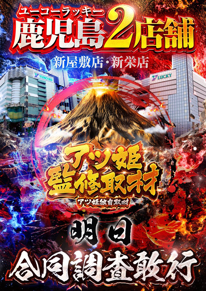 投稿本文: こんばんは🌃ユーコーラッキー新屋敷店です‼️ 🔥明日14日(土)🔥🏔鹿児島ユーコー2店舗合同 アツ姫監修取材🏔 ✨ユーコーグループ全店 結集✨皆様のご来店お待ちしております🐼#ユーコーラッキー新屋敷店#アツ姫監修取材 さらに表示