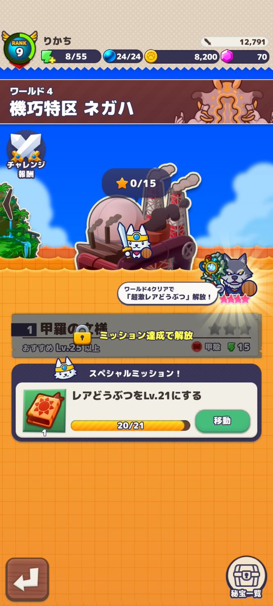 投稿本文: #どうぶつマフィアワラウstepup→1140円2日目ワールド3クリア👏今のところ各ワールド3ステージワールド4は入場条件有レアのキャラをLv21Lv21に上げるにはプレーヤーランクを15が条件 さらに表示