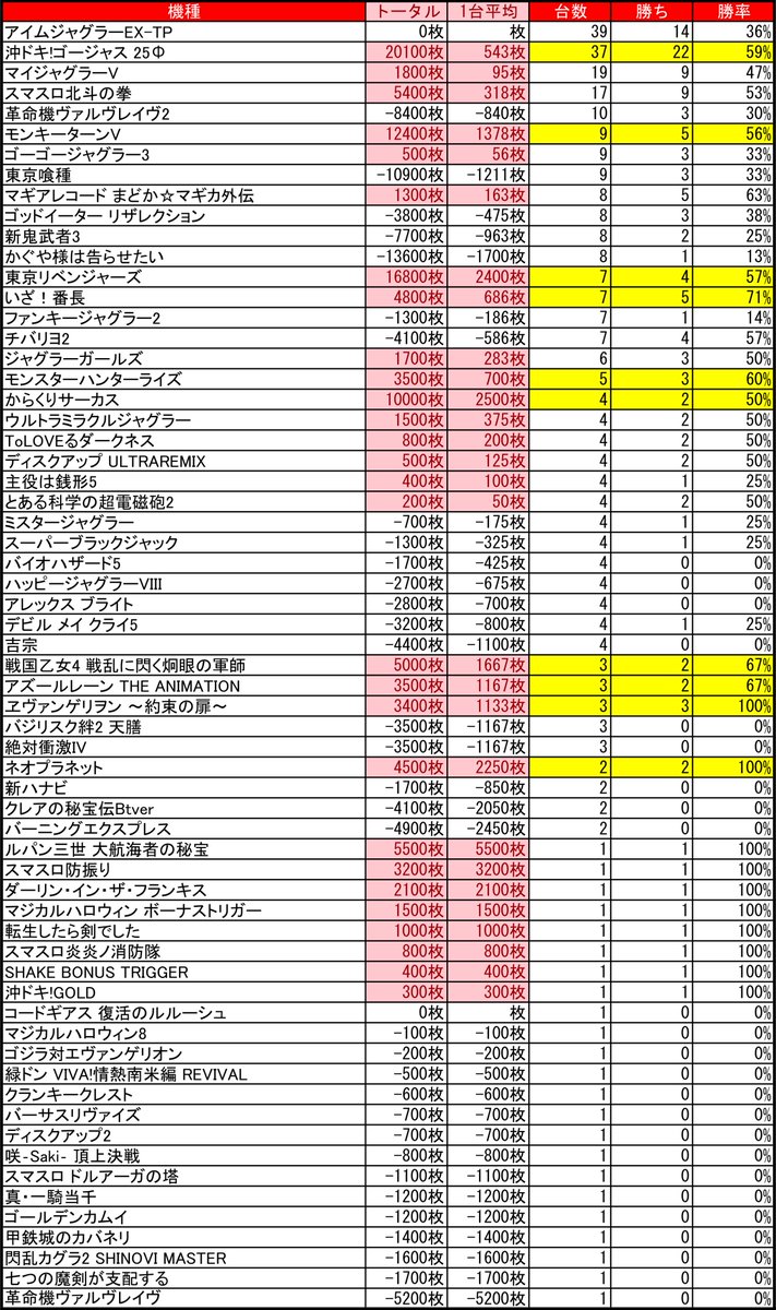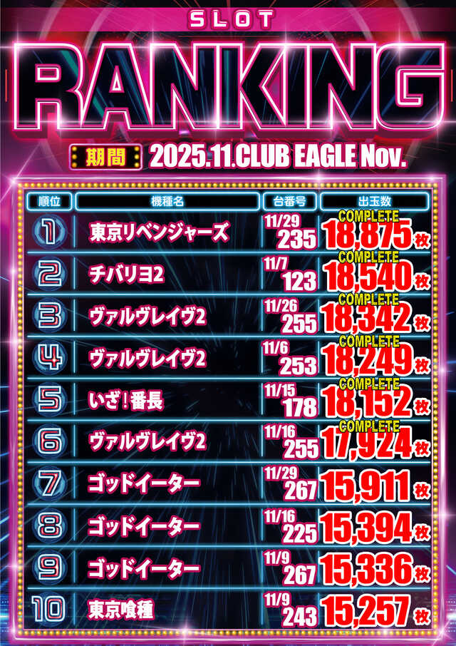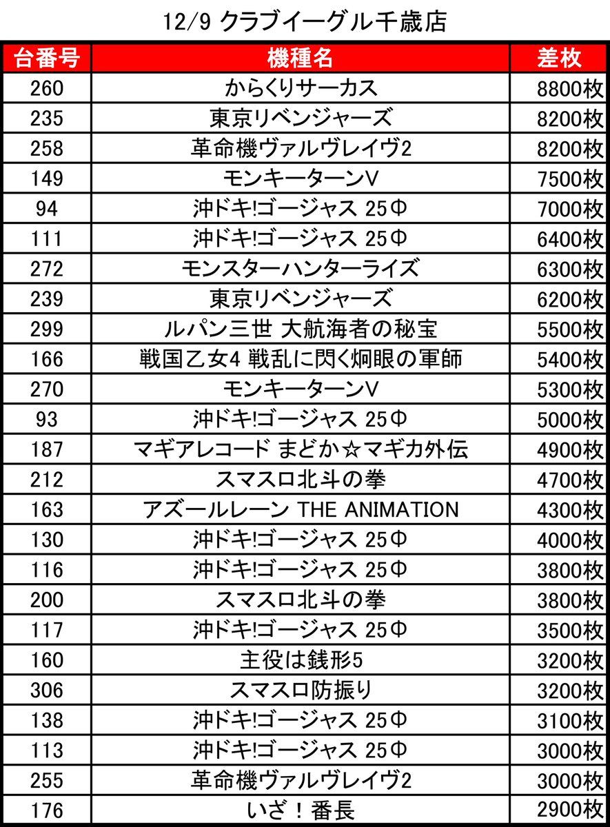 【12/9 クラブイーグル千歳店】9の付く日→集計結果