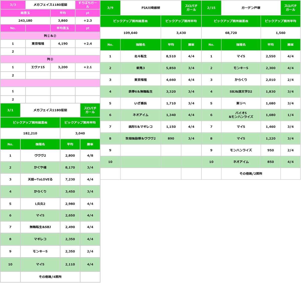 🎰4台並びを意識して立ち回り✅