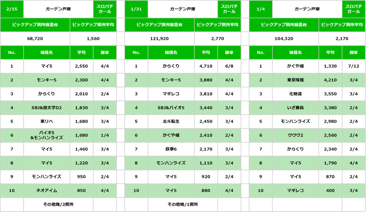 店舗総差枚+60067枚