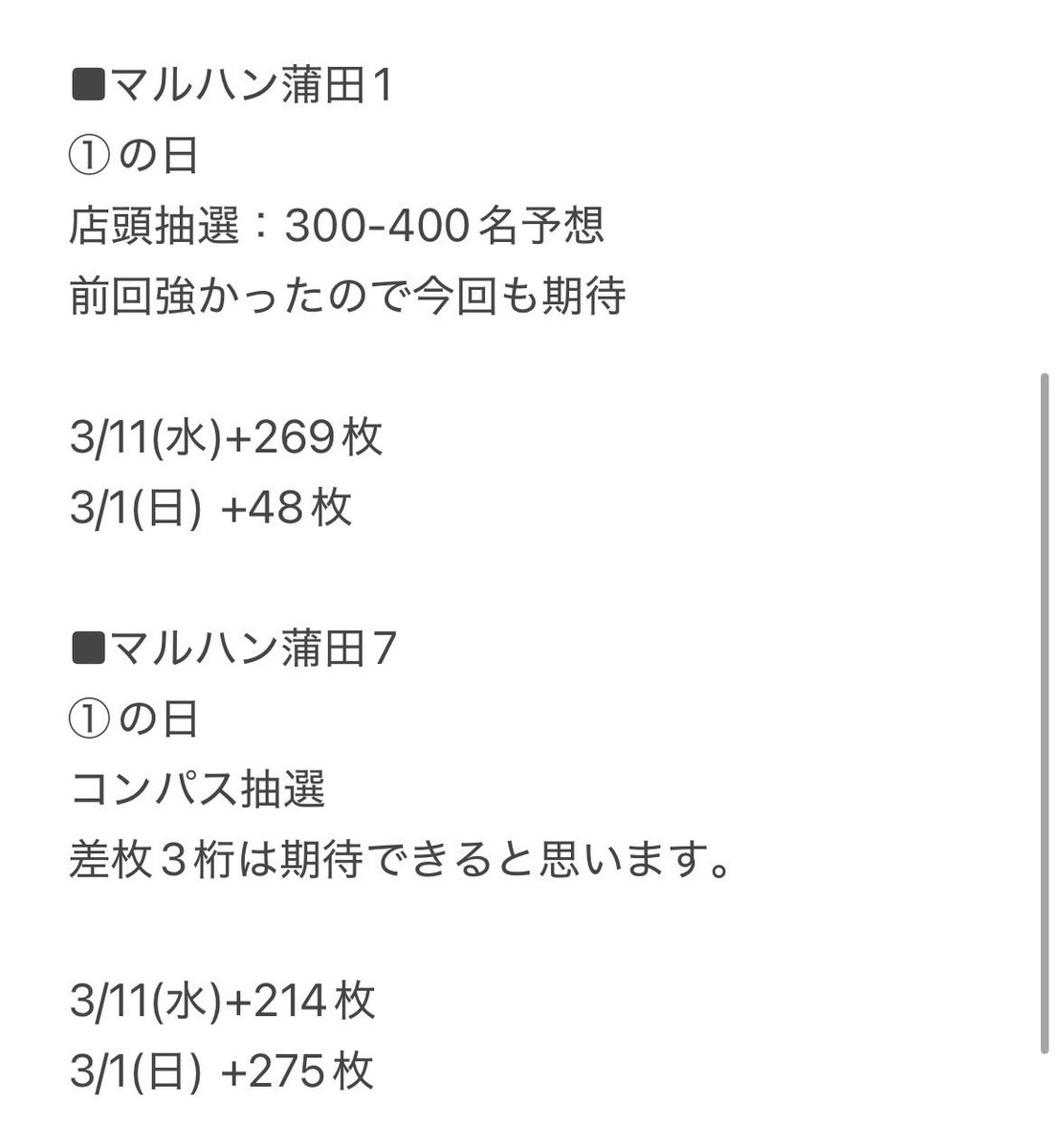 鶴見UNOとマルハン系列が特定日