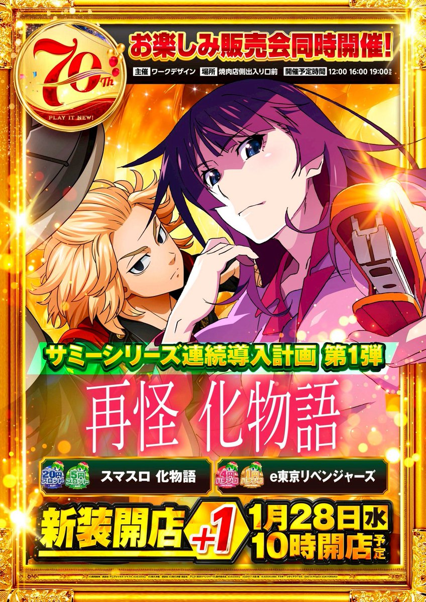 投稿本文: 1/30(金)🌈ガーデン松戸金ヶ作🌈#松戸金ケ作📣70周年開幕📣✅新装開店🎉✅『⓪の日』近隣対抗⚔️✅サミー連続導入👽⏩サミー強化⁉️📝28日に続いて明日もサミー連続導入❗️📝化物語に続いて東リベ増台‼️2月以降もサミー機種狙いが間違いない⁉️『近隣対抗+新装開店』で狙いは新台⁉️ さらに表示
