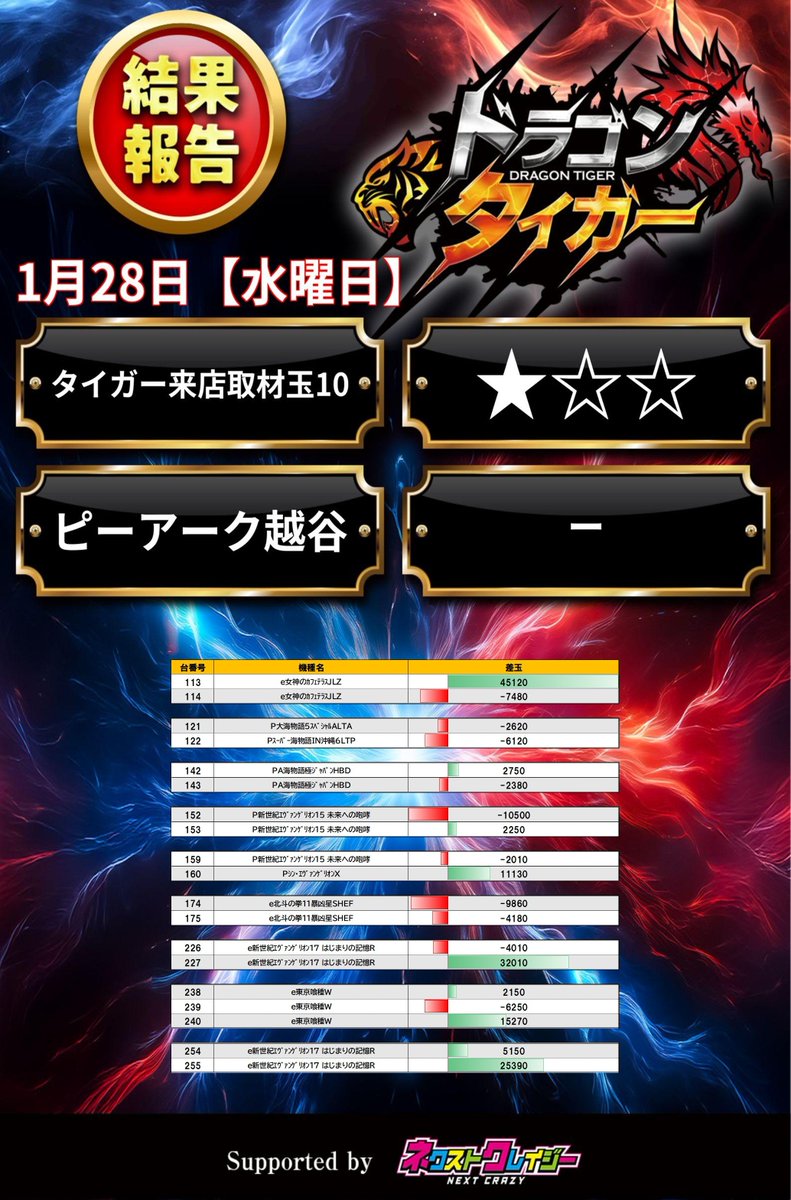 1/28 タイガー来店取材玉10(★☆☆)