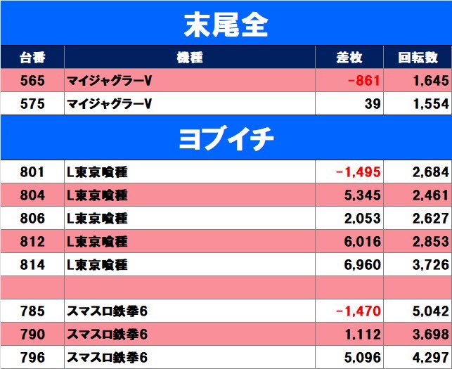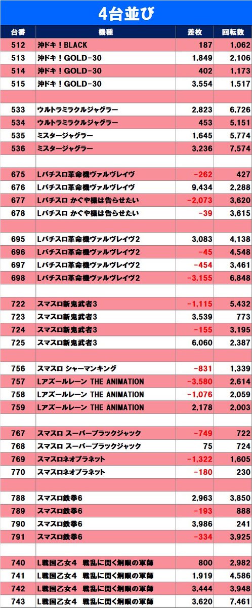 ローテの2機種は初日のデータも参考に。