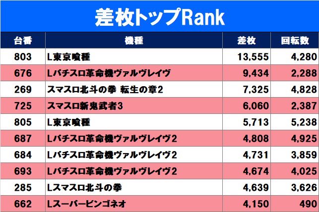 【高稼働機種一部抜粋】