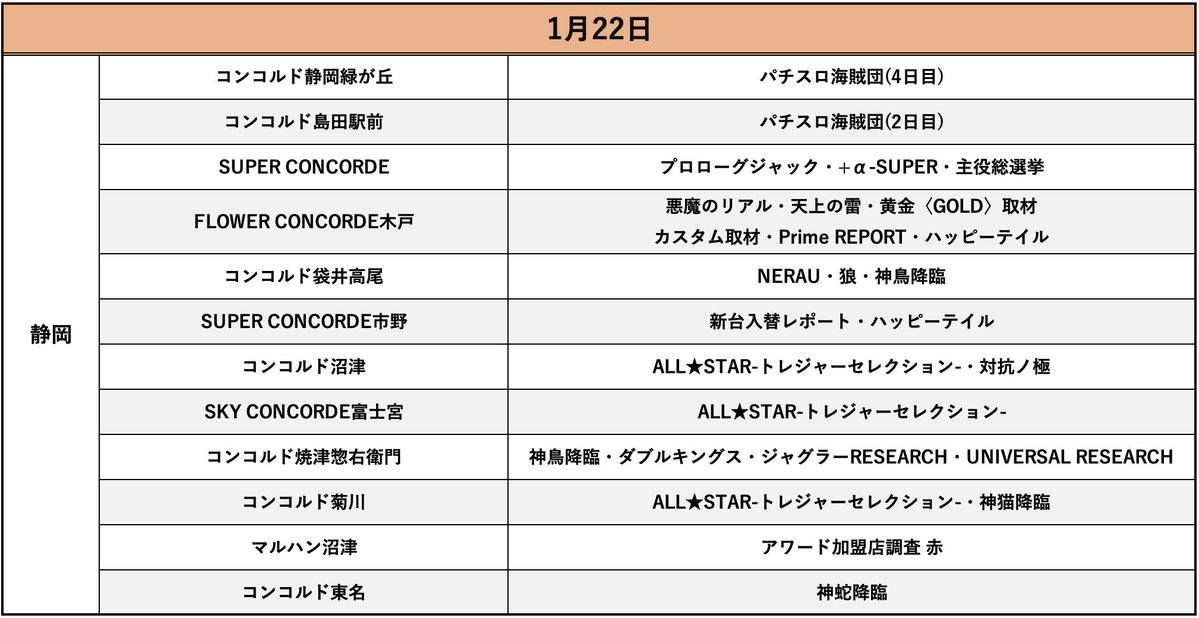 投稿本文: 1/22ミカド千秋コンコルド880愛西日比野駅前西尾市米津町のいつものお店メガコンコルド1212+6木場インター丹羽郡大口町国道41号線沿いの大型店MEGAコンコルド1280稲沢コンコルド800+3一宮尾西インター高浜市いつものお店キング会館名東ミカド稲沢静岡+12店舗 さらに表示