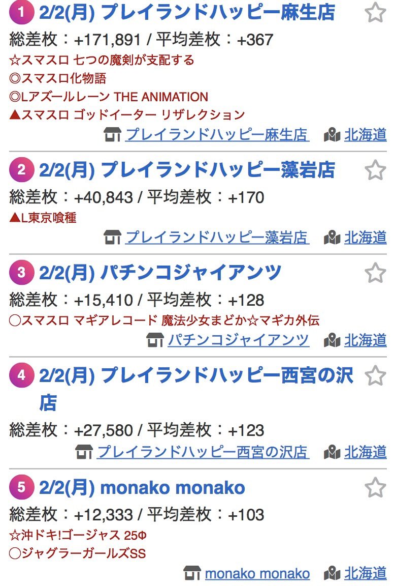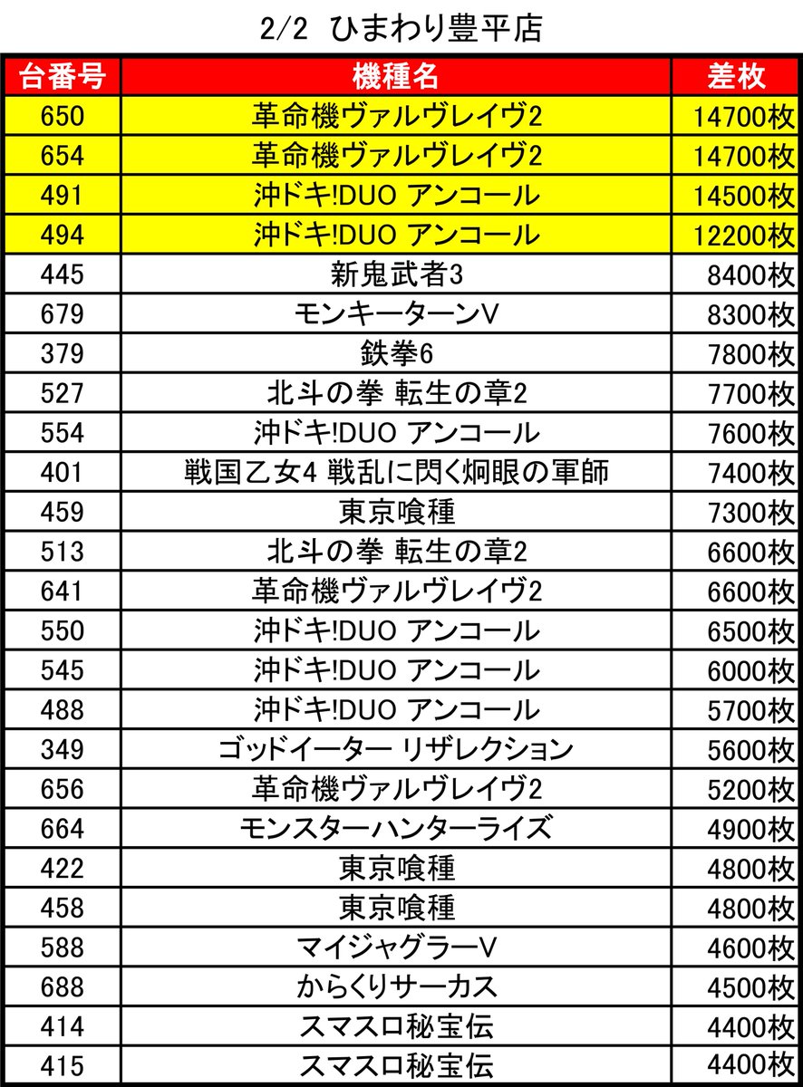【2/2 ひまわり豊平店】ゾロ目の日!→集計結果