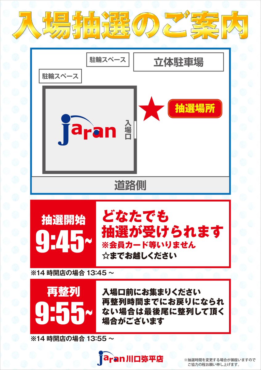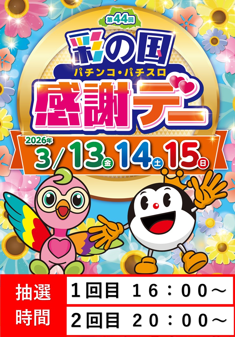 投稿本文: 🕊️明日3月14日(土)🕊️彩の国ファン感謝デー2日目🤍【開催予定時刻】☁️第1回目 16:00~🍼第2回目 20:00~週末もジャラン川口弥平店へ˘͈ᵕ˘͈※9時45分〜抽選開始 さらに表示