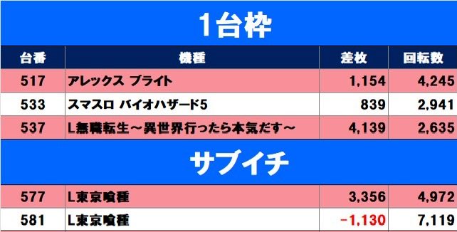 マイ5,東リべ等メインからバラまで幅広く好調箇所アリ❣️