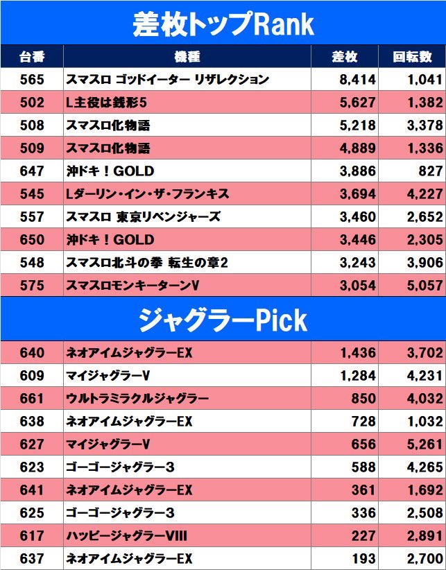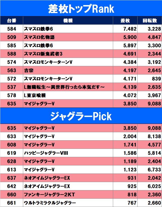 まずはローテ2日目の2機種を最優先♻️