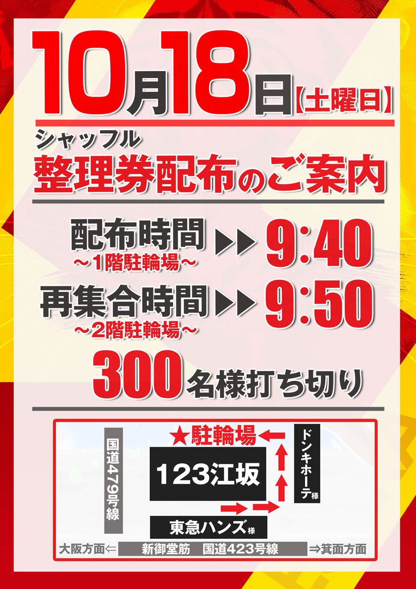 投稿本文: 10.18(土)123江坂店🏴第三土曜日🏴グローバルタオル入荷(超/金)吹田エリアの強豪ホールに第三土曜日(特定日)到来🚀✨ 🪧グローバルタオル(超/金)傾向⑴全台系+並びが出現⑵メイン各機種に単品出現⑶少数構成機種に高配分 直近の出玉実績を振り返るとメイン機種~バラエティまで さらに表示