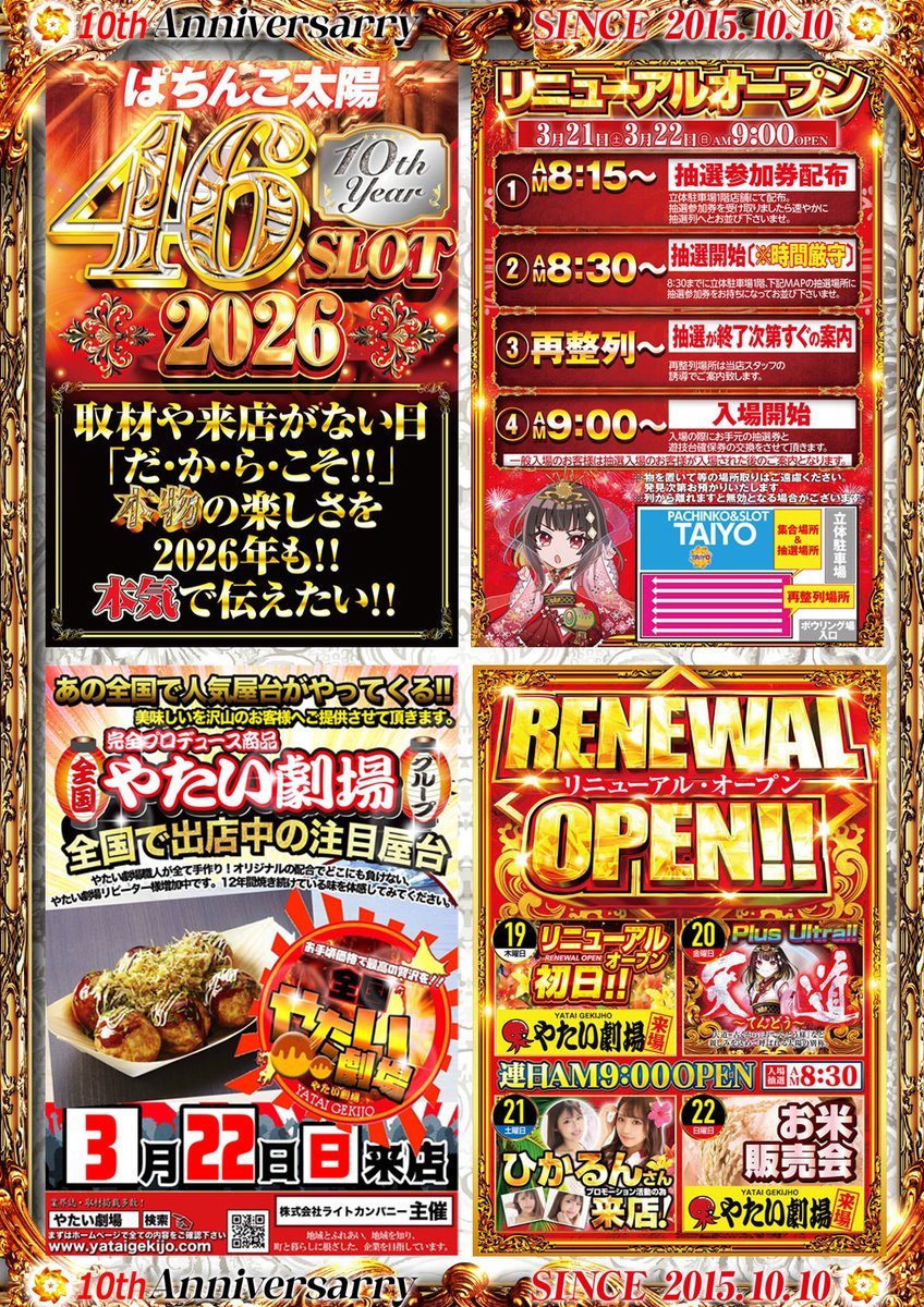 投稿本文: こんばんは🌙✨=========✨SUN RISE~西尾の太陽が更に輝く~✨=========✨明日も #抽選入場⏰朝8:30~抽選開始⚠️抽選時間に注意#来店や取材がない日だからこそ🎰SLOTの楽しさを伝えたい🎰#スターボウル 駐車場に大人気の屋台#やたい劇場 様来場(予定)楽しさ満載の #ぱちんこ太陽 へGO!! さらに表示