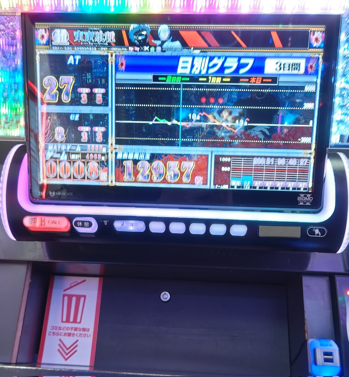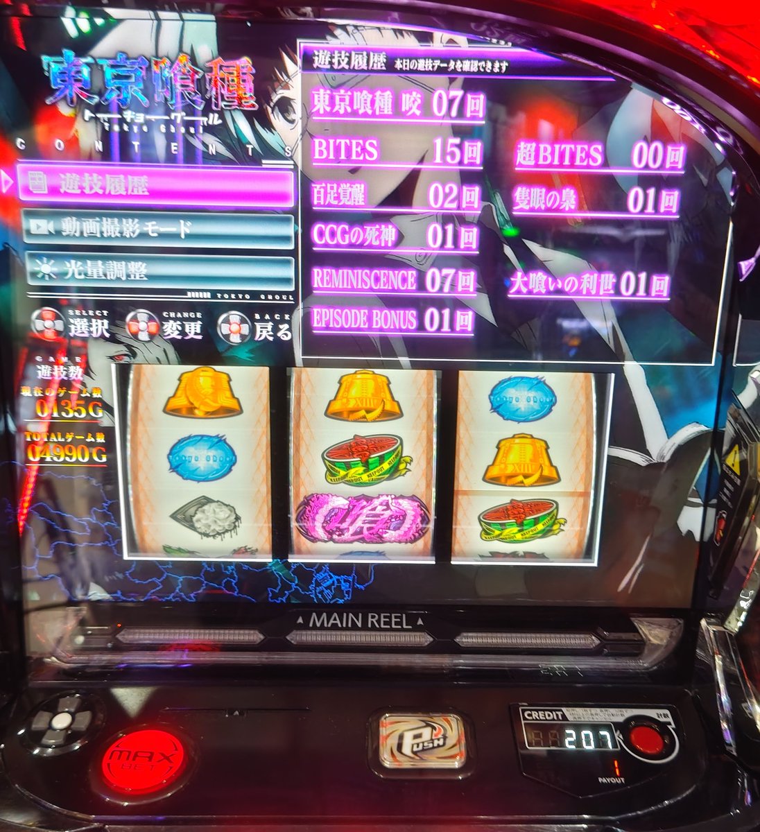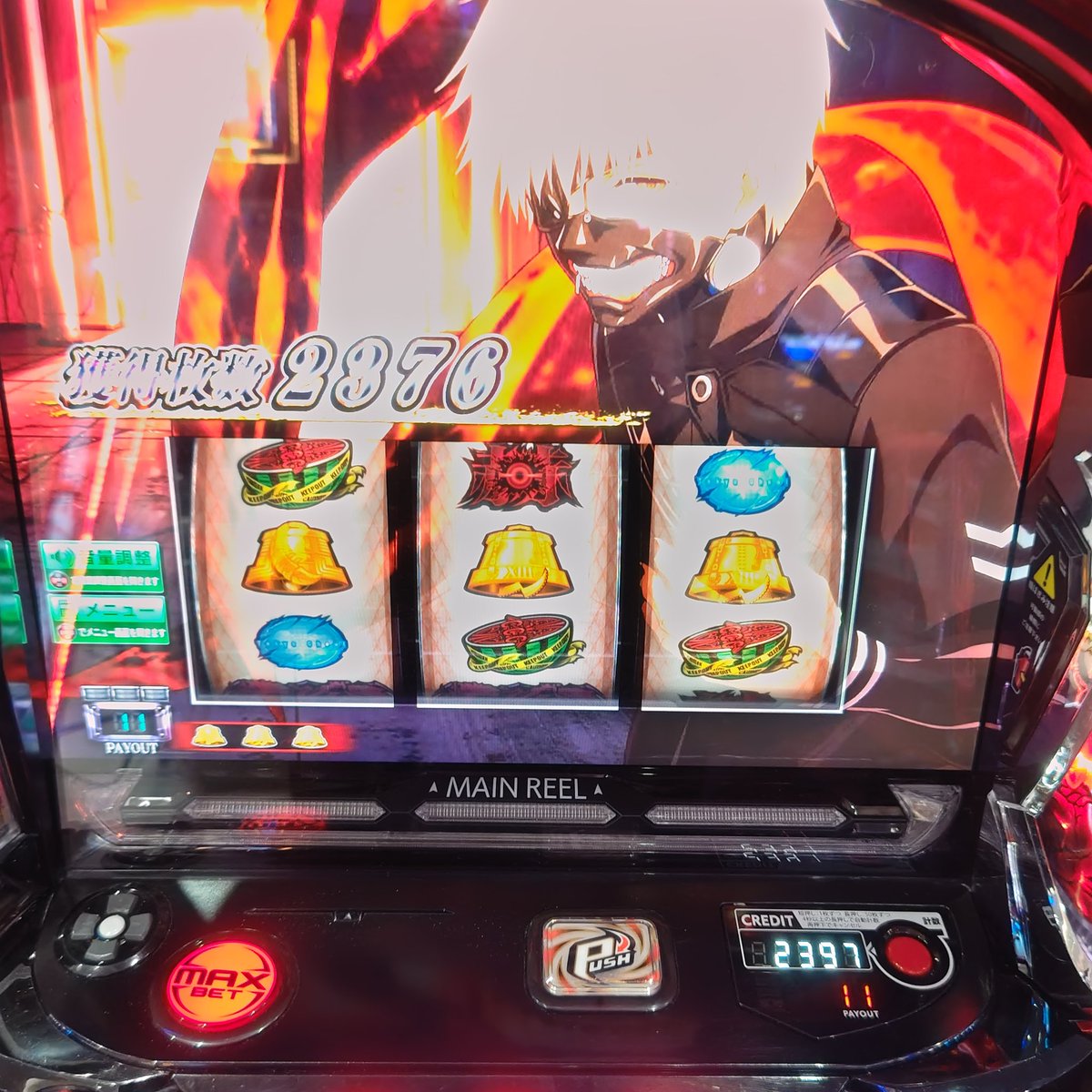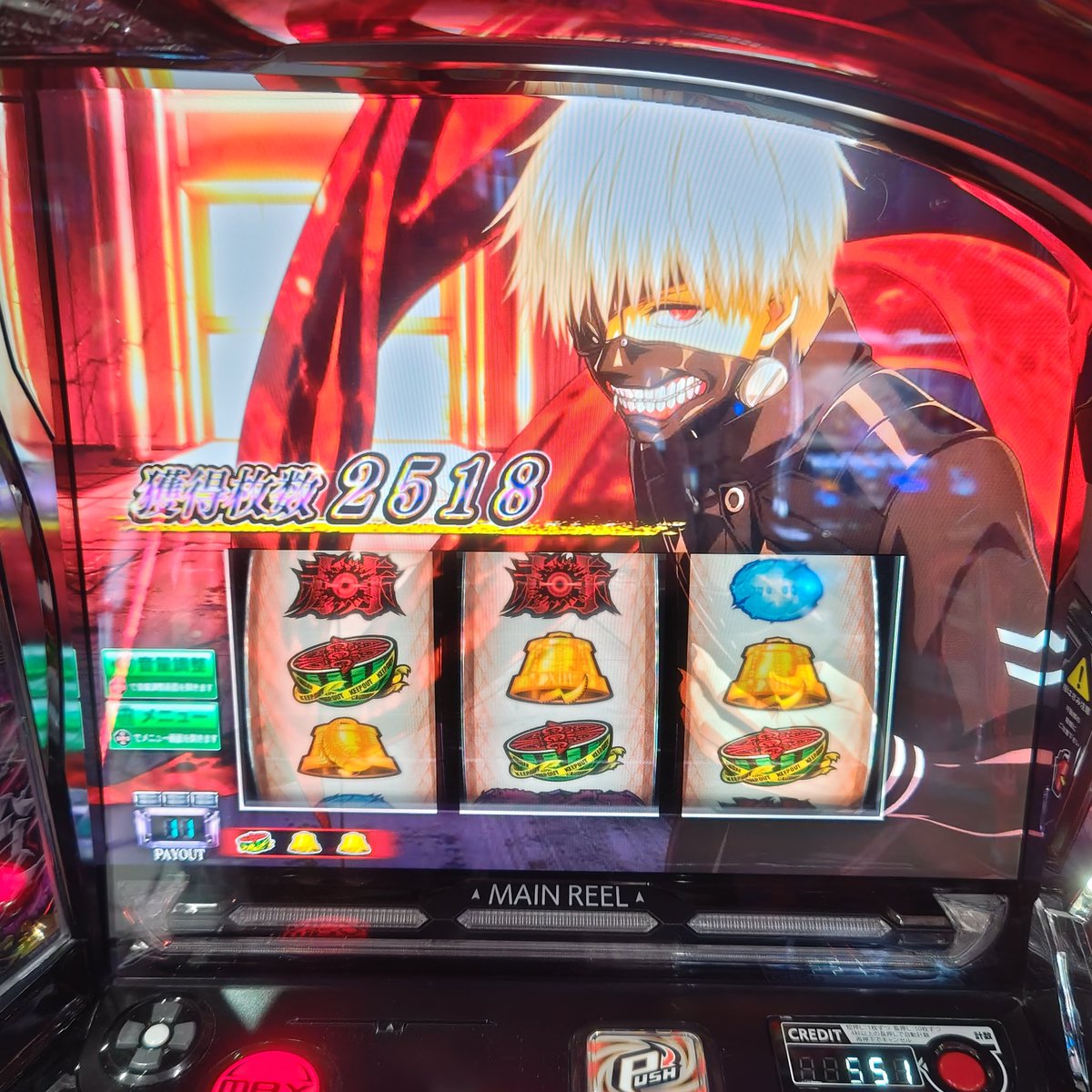 投稿本文: 3/11スマスロ東京喰種実践実践店▶️マルハン美しが丘店投資2.6万ぴ 回収4.25万ぴ前回実践と同じスマスロ東京喰種を打ってきました🥹1.1万ぴ初当たり2.500枚から全てのメダルがなくなり追加投資の展開👊諦めずに粘りなんとかプラス収支で終えることが出来ましたとさ🥹🤞#スマスロ東京喰種 さらに表示