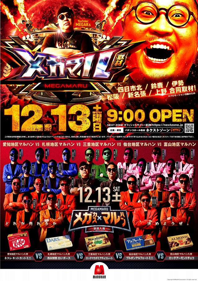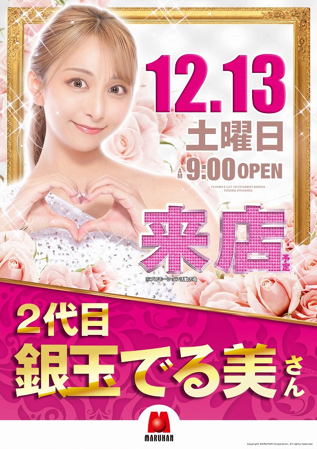投稿本文: マルハン伊勢店 役職Xです。12月13日(土)のご案内です。🍀ドヨウビマルハン💎2代目銀玉でる美さん 実践来店 ✅@derumi_gindama 😎スパジャッジSS取材班来店🌞メガマル取材班来店🍫メガカス×マルハン-賞品入荷-8時45分より、並び替え抽選を行います。皆さまのご来店お待ちしております♪ さらに表示