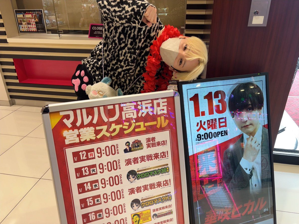 投稿本文: 本日行かせていただきました📍マルハン高浜店さん📍マルハン東浦店さん📍マルハン安城店さんの明日からのスケジュールはこちら💁♂️-----・高浜店1/12 ✨今井らいぱちさん来店✨大学院生A子さん来店🔍まさお連合軍来店1/13✨華咲ヒカル来店ぼく1日まるっとおります✌️・東浦店1/14 さらに表示