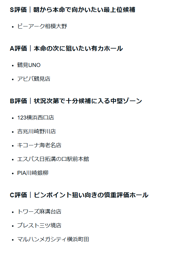 投稿本文: 【神奈川県】3月10日(火)パチンコホール期待度まとめ。旧イベント日0の日×カバネリ海門決戦導入1週間。平日でも見逃せない神奈川の注目ホールを整理。S評価|【ピーアーク相模大野】A評価|【鶴見UNO【アビバ鶴見店】B評価|【123横浜西口店】【吉兆川崎野川店】【キコーナ海老名店】 さらに表示