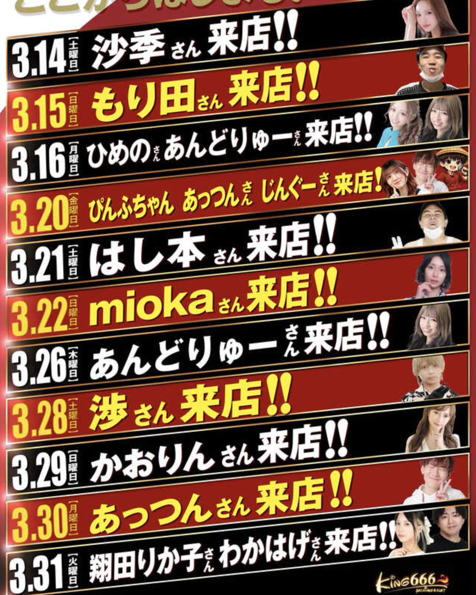 投稿本文: ~良い喧嘩場~キング666東海店期待度A🤔<来店>ひめのさんあんどりゅーさん<狙い目>オススメ機種を中心に稼働が上がりそう。円卓の島には、注意。3台しかけが複数かも👀 さらに表示