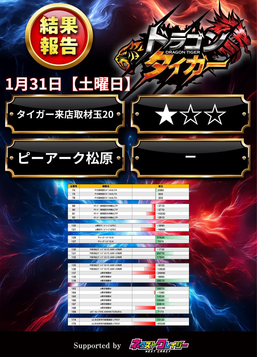 1/31 タイガー来店取材玉20(★☆☆)