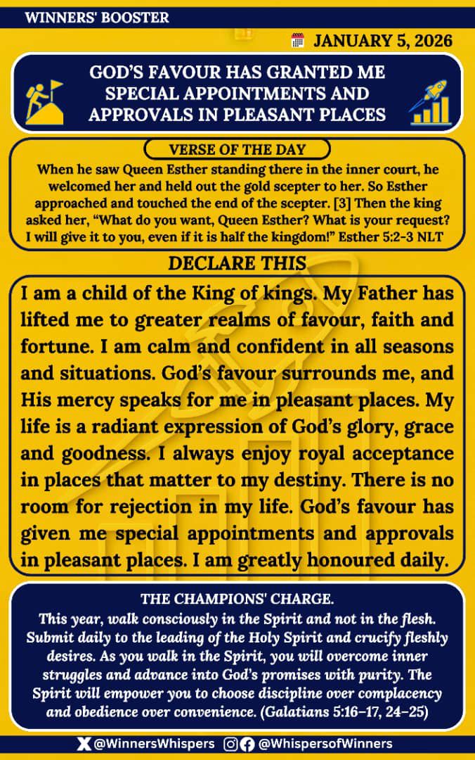 I am a child of the King of kings. My Father has lifted me to greater realms of favour, faith and fortune. I am calm and confident in all seasons and situations. God’s favour surrounds me, and His mercy speaks for me in pleasant places. My life is a radiant