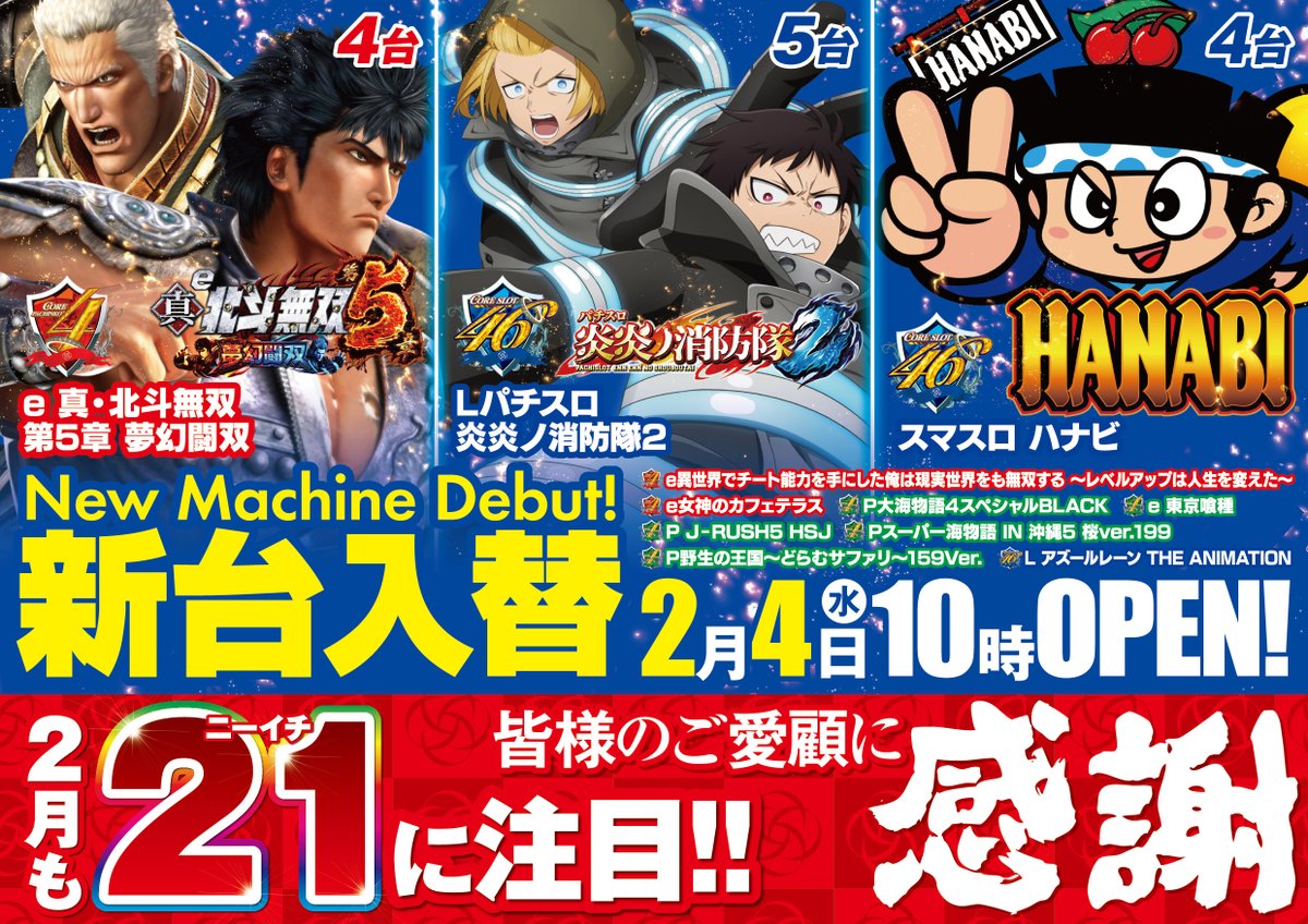 投稿本文: 明日のお知らせ🔔2月4日(水)のCORE21新八代店は🔥新台入替 10時OPEN🔥話題の新機種・人気機種の増台でのお迎えとなっています🫶明日のオープンをお楽しみに👍#新台入替 #CORE21新八代店 さらに表示