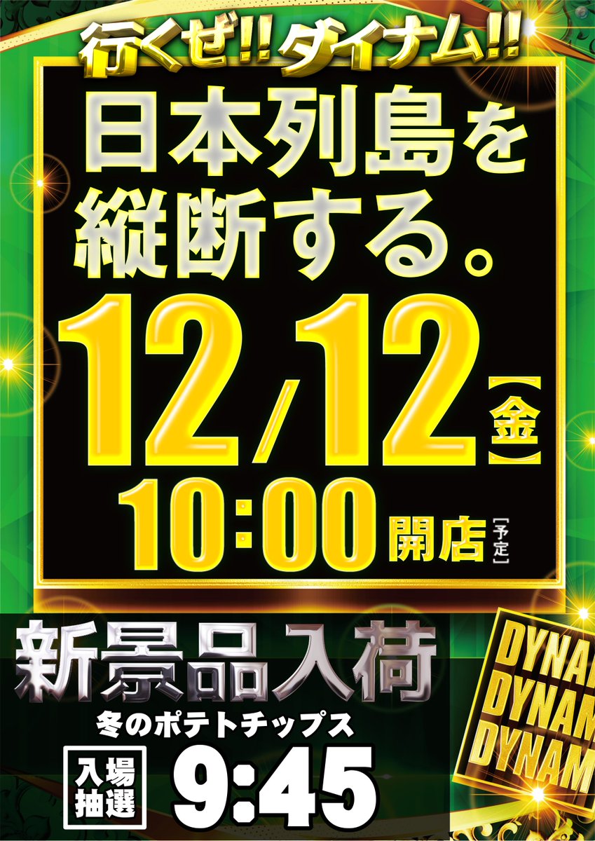 投稿本文: ダイナム埼玉所沢店です❗連続更新3日目😏#行くぜダイナム1️⃣2️⃣/1️⃣2️⃣(金)関東圏 #ダイナム 総力結集埼玉県ダイナム一斉10時開店❗❗月に一度の月と日が重なる日😁#誕生日、新装開店が重なる1️⃣2️⃣日は是非当店へ❗❗❗ご来店をお待ちしてます😄次回12/11店長から投稿が⁉️お楽しみに🤩 さらに表示