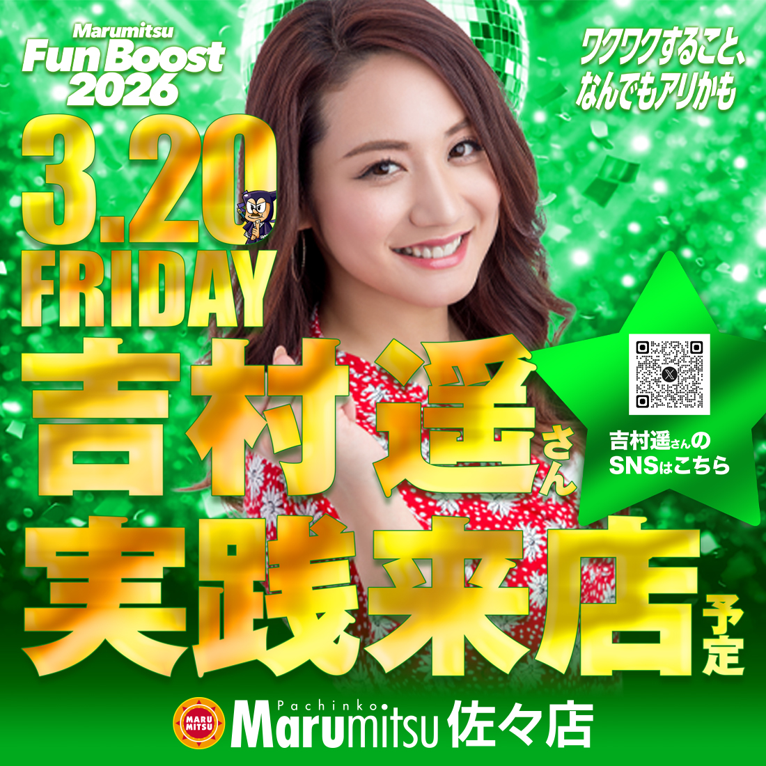 投稿本文: こんばんは★まるみつ佐々店です! 明日3月20日【金】 10時開店【予定】 🔥5店舗合同OPEN🔥💚吉村遥さん実践来店予定💚抽選を受けられるお客様は9時40分までに抽選整理券をお受け取り下さい💚皆様のご来店を従業員一同心よりお待ちしております🔥 さらに表示