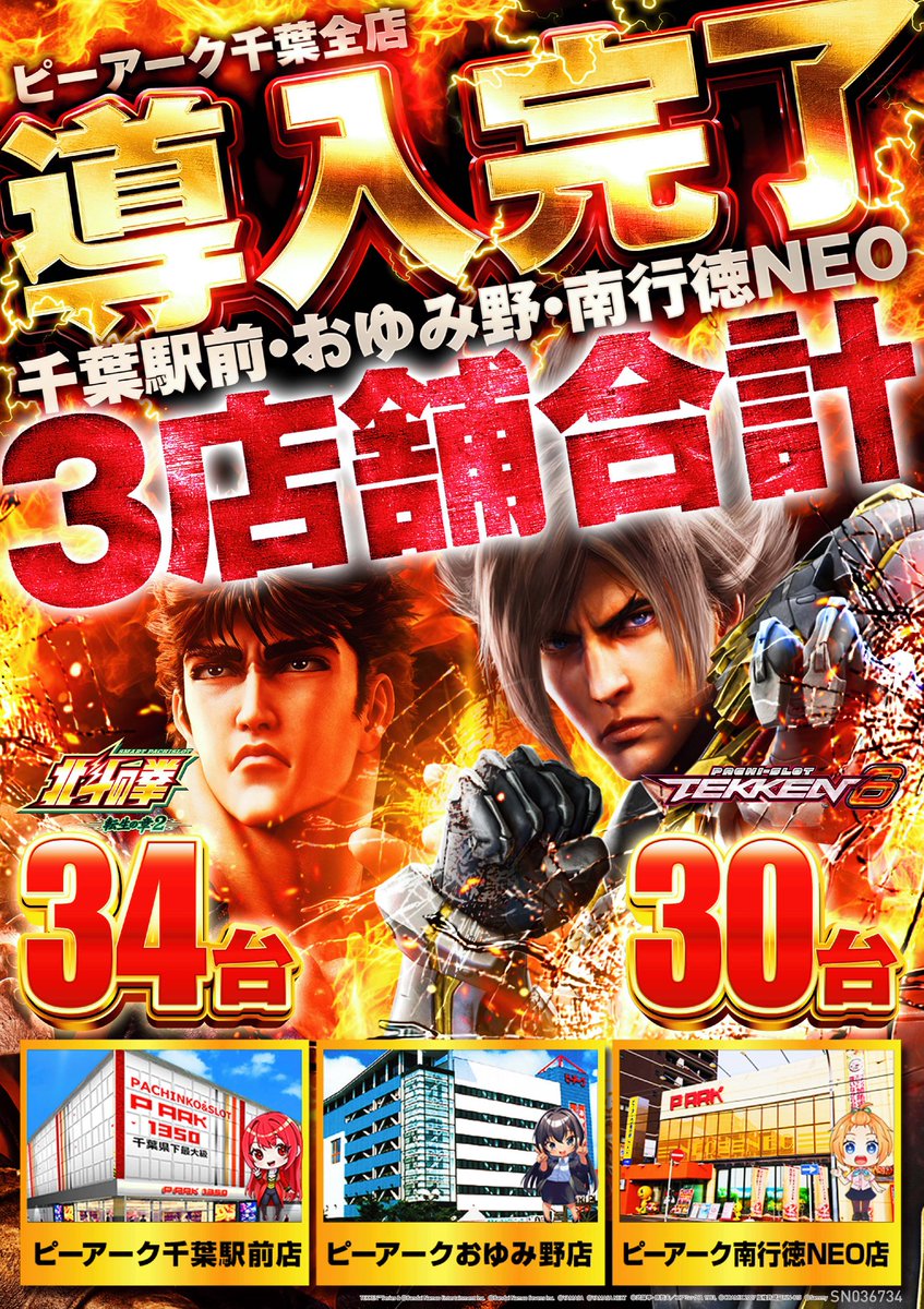 投稿本文: .10日(土)・11日(日)・12日(祝)3連休も連日10時オープン🟢ピーアーク千葉駅前🟢ピーアークおゆみ野🟢ピーアーク南行徳NEO新台も導入完了ななななんと😎3店舗合計台数🚩北斗転生 ⇒34台👊🚩鉄拳 ⇒30台👊3連休はお近くのピーアークで最新台をお楽しみ下さい#拳 さらに表示