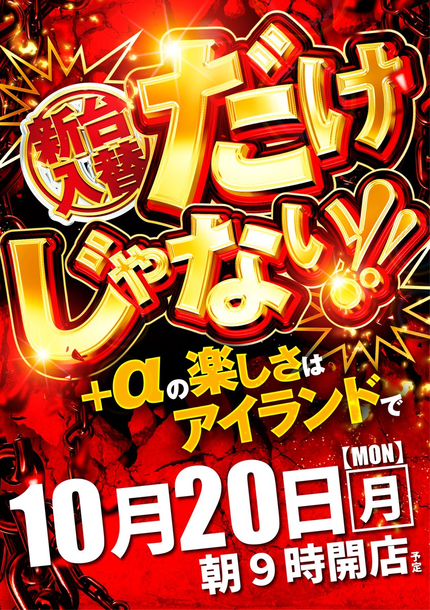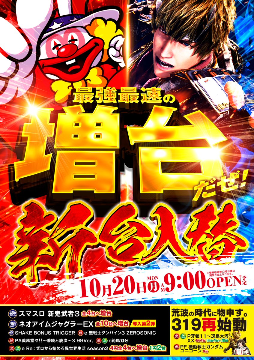 投稿本文: 1⃣0⃣月2⃣0⃣日(月)は🆕新台入替OPEN予定です🎊💡最強最速の注目機増台‼️🆙ネオアイムジャグラーEX⇒全10台設置へ✨🆙スマスロ 新鬼武者3⇒全4台設置へ✨🌊荒波の時代なパチンコへ...🐺319機🦄【再始動】他人気機、話題機導入予定👍新台+α楽しむなら是非アイランド長井店へ🫶 さらに表示