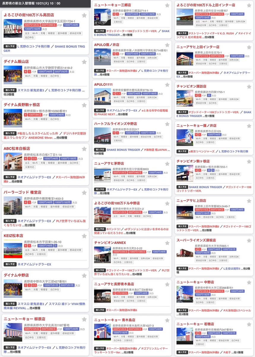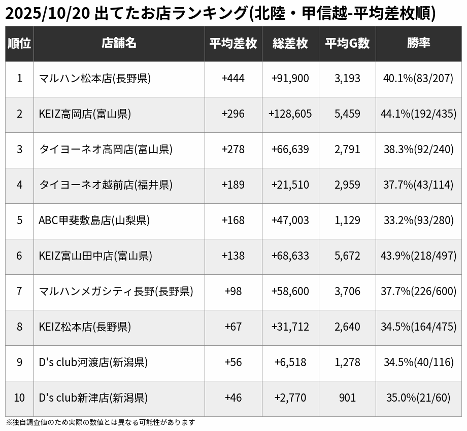 🏆10/20 出てたお店ランキング(北陸・甲信越-平均差枚順)