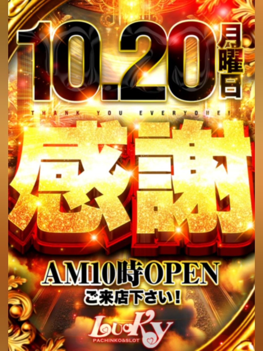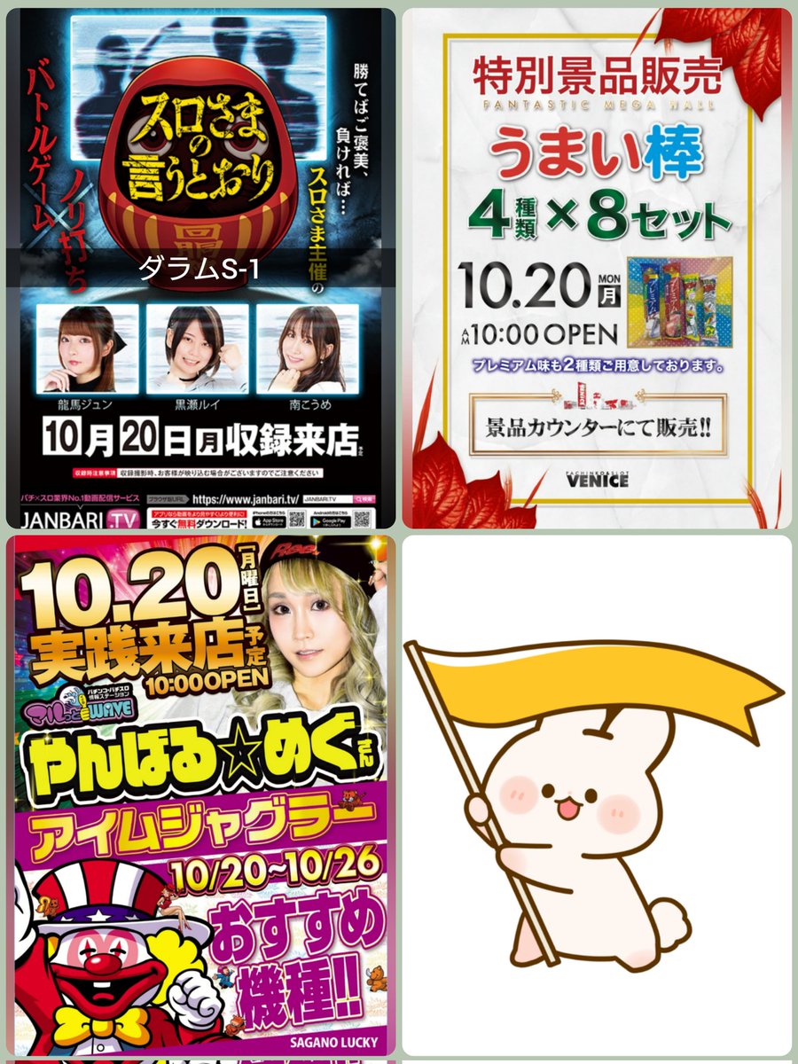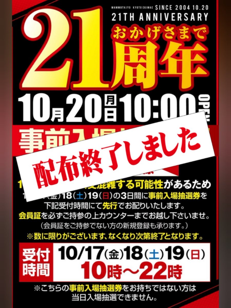 投稿本文: 2025/10/20(月)は何処へ周年🦣は、事前入場抽選券の配布済【周年】🎂マンモス城京都駅前🐰【0のつく日】🚀KEIZ甲賀水口(とみとみちゃん)🧂オーギヤ彦根(二星しょうた)⛵️キング千本(ひかりの真実)⛵️キング西円町(ひかりの真実)⛵️キング河原町【Et cetera】🐋京都駅前ラッキー(感謝ポスター) さらに表示