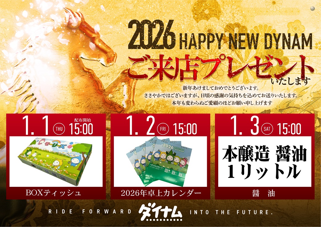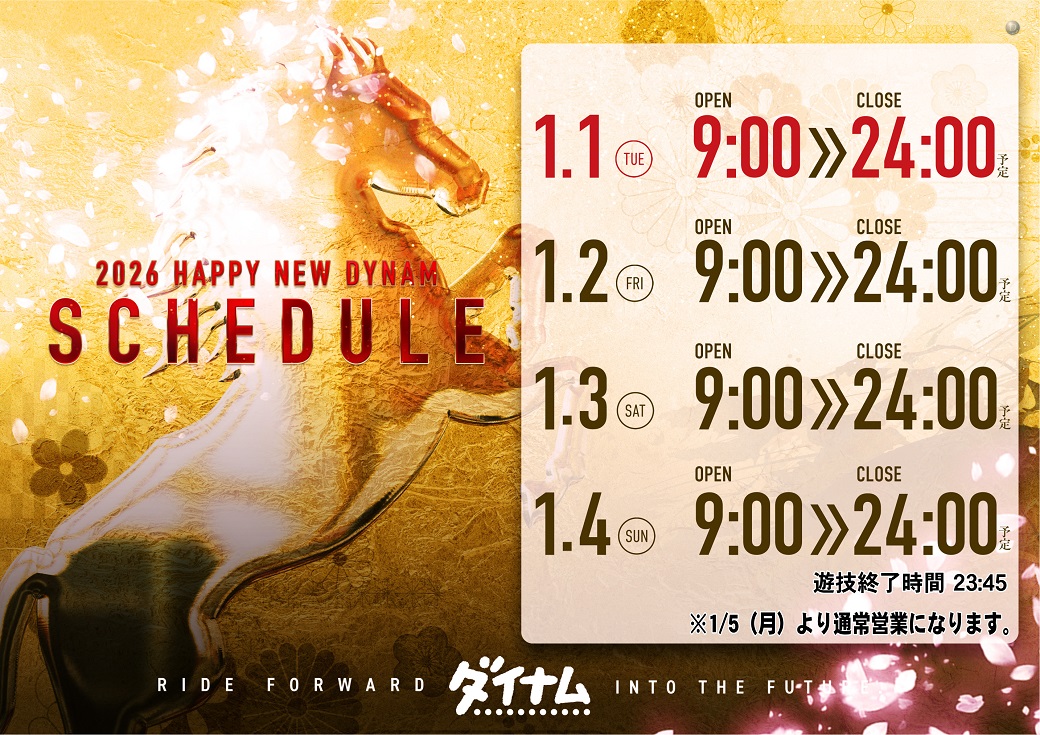 投稿本文: 本年もダイナム秋田御所野店にご愛顧いただきありがとうございました‼️明日1/1日(木)は#ご来店プレゼント #延長営業 となっています🎵ぜひ初打ちはダイナム御所野店で👊皆様のご来店お待ちしてます✨#ダイナム #パチンコ #スロット さらに表示
