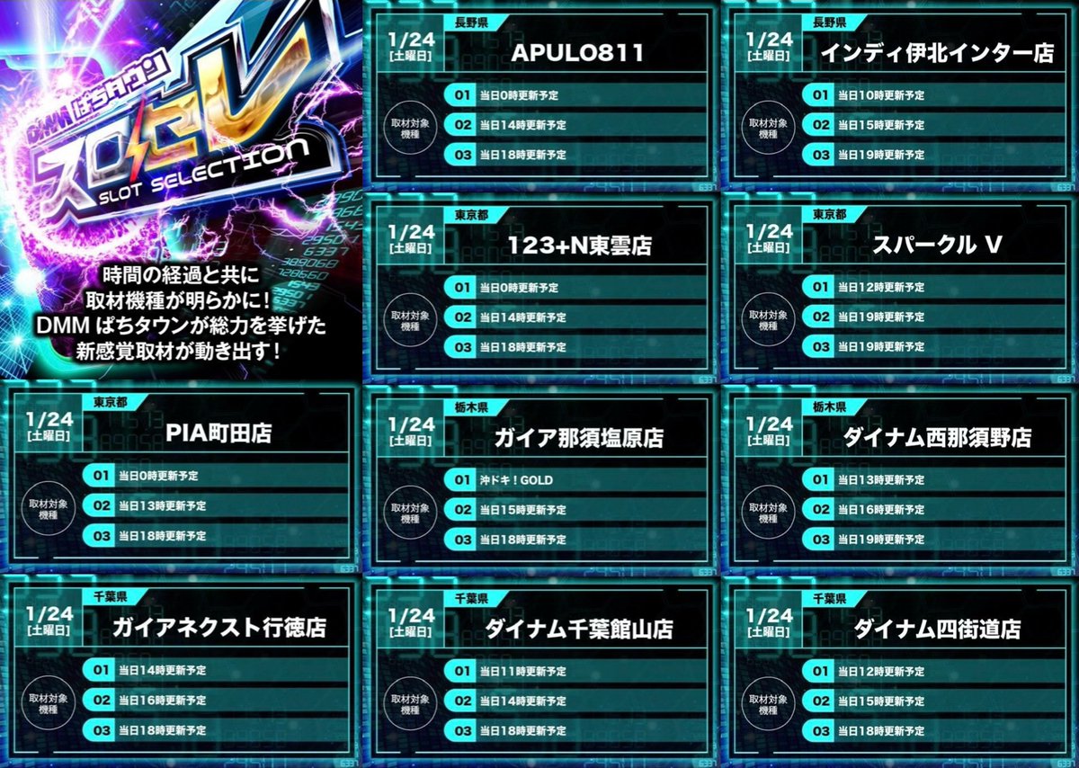 投稿本文: 🎰スロセレ🎰明日1月24日(土)開催⚡【長野県】APULO811インディ伊北インター店【東京都】123+N東雲店スパークル VPIA町田店【栃木県】ガイア那須塩原店ダイナム西那須野店【千葉県】ガイアネクスト行徳店ダイナム千葉館山店ダイナム四街道店👇取材対象機種を発表(関東)👇 さらに表示
