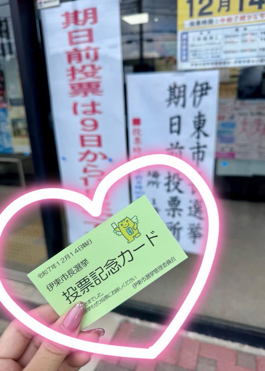 投稿本文: 今日は #伊東市長選挙 、投票日ですね📝ながのは期日前投票で行ってきました😎今日は休日なので家の大掃除を進めようかしら断捨離だー!!12月は忙しくなりますね🏃🏃🏃ではまた、ダイナム静岡伊東店でお会いしましょう~🎵#伊東市#市長選#投票 さらに表示